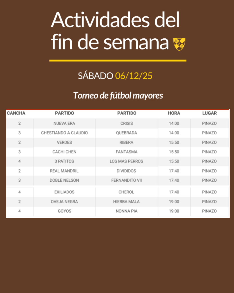Actividades del fin de semana: 06, 07 y 08 de diciembre