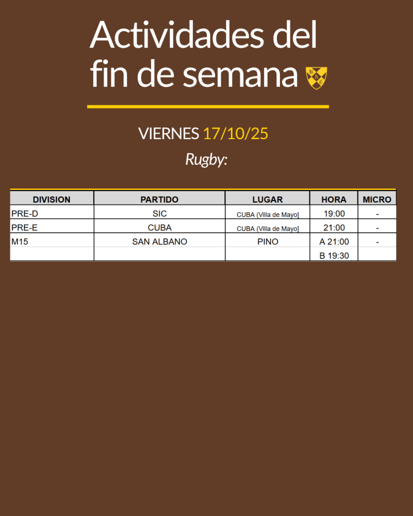 Actividades del fin de semana: 10, 11 y 12 de octubre